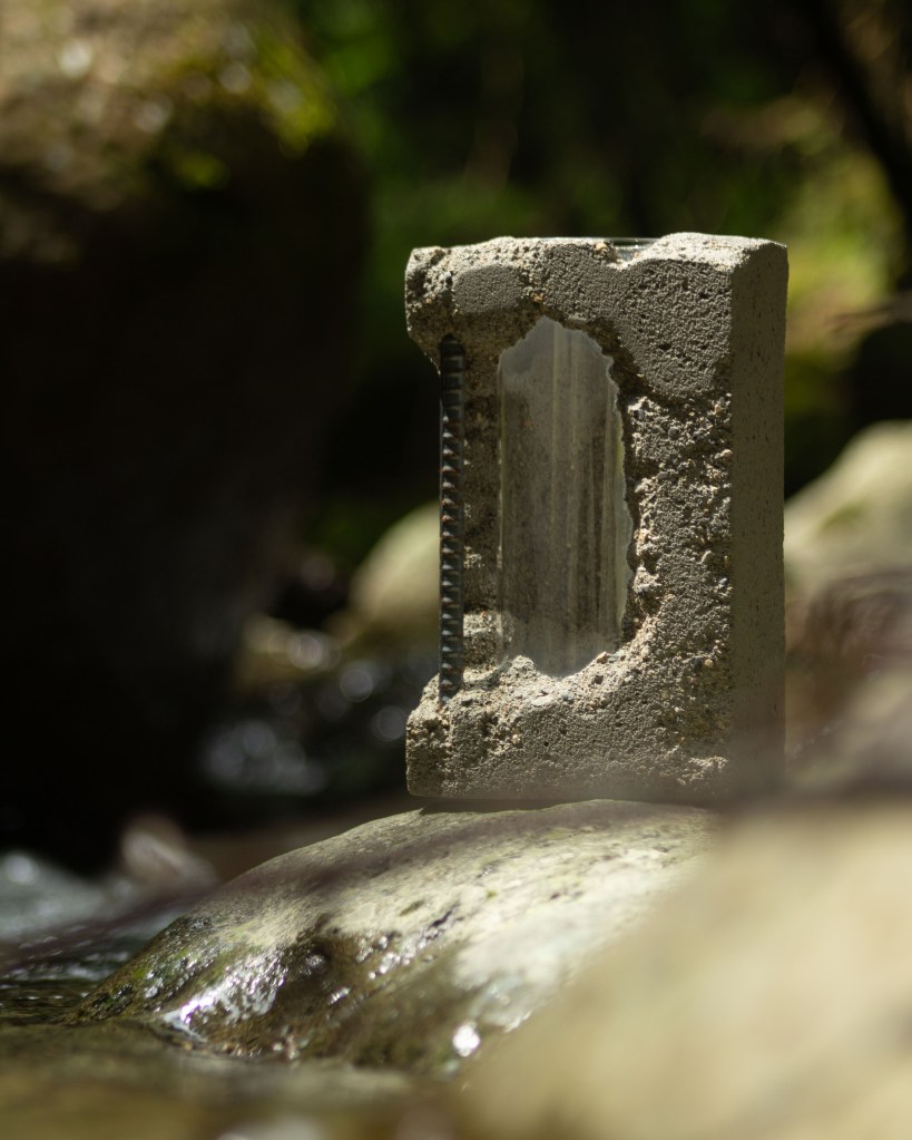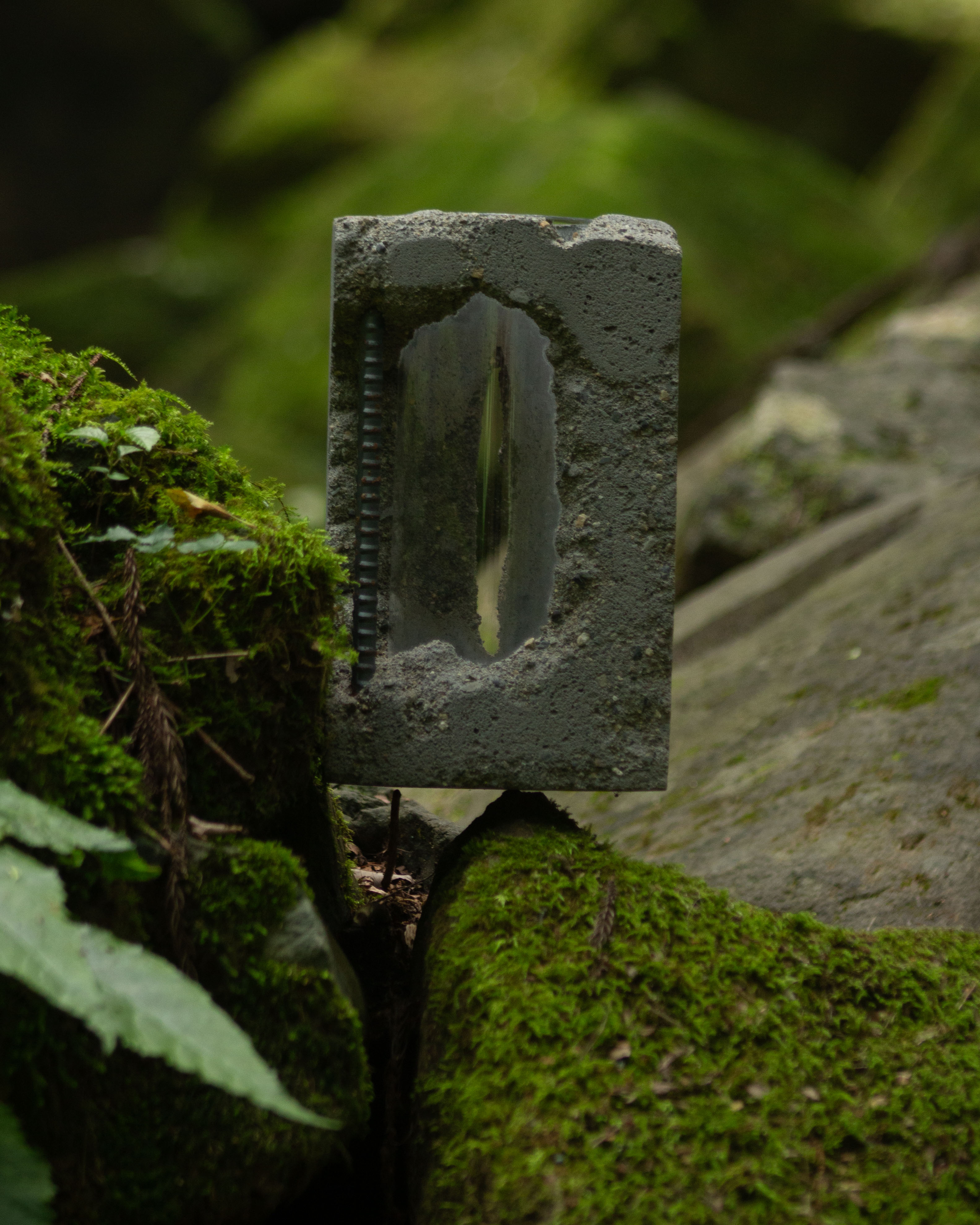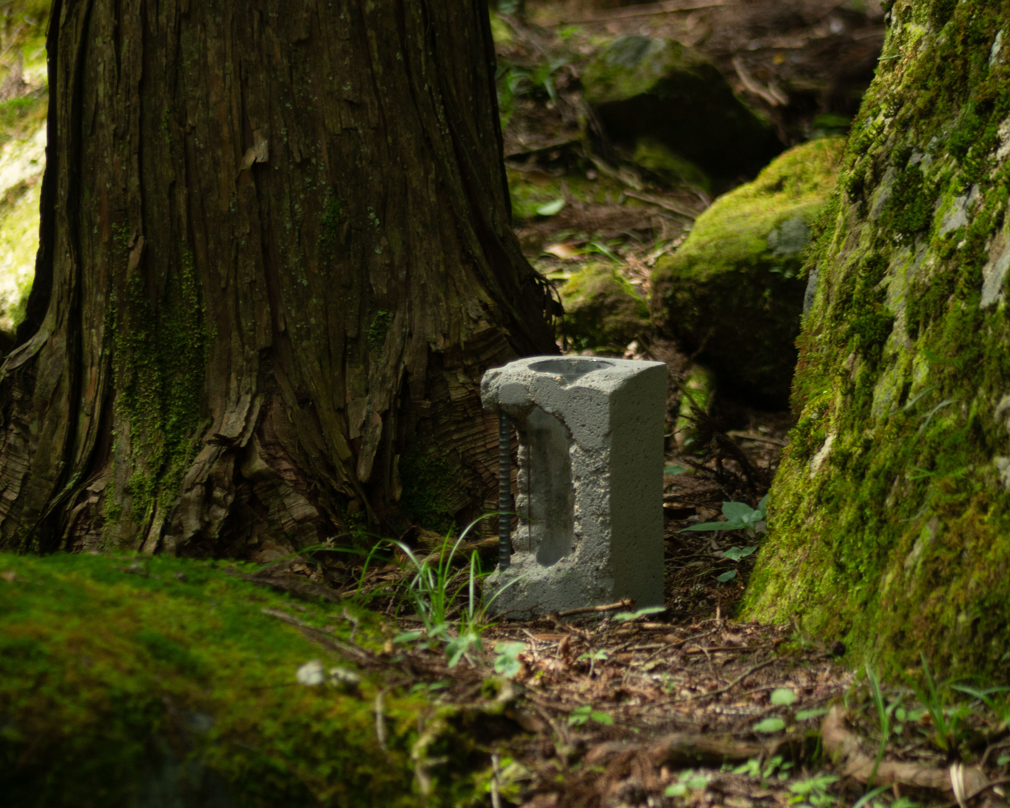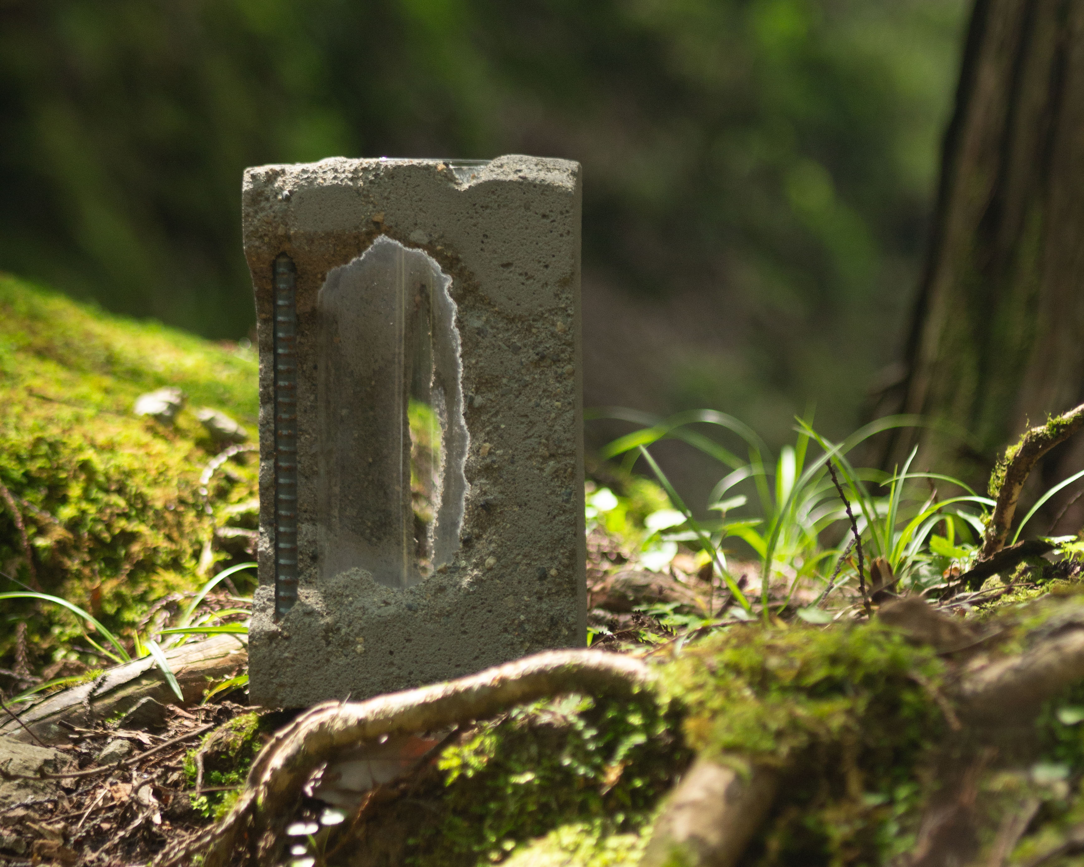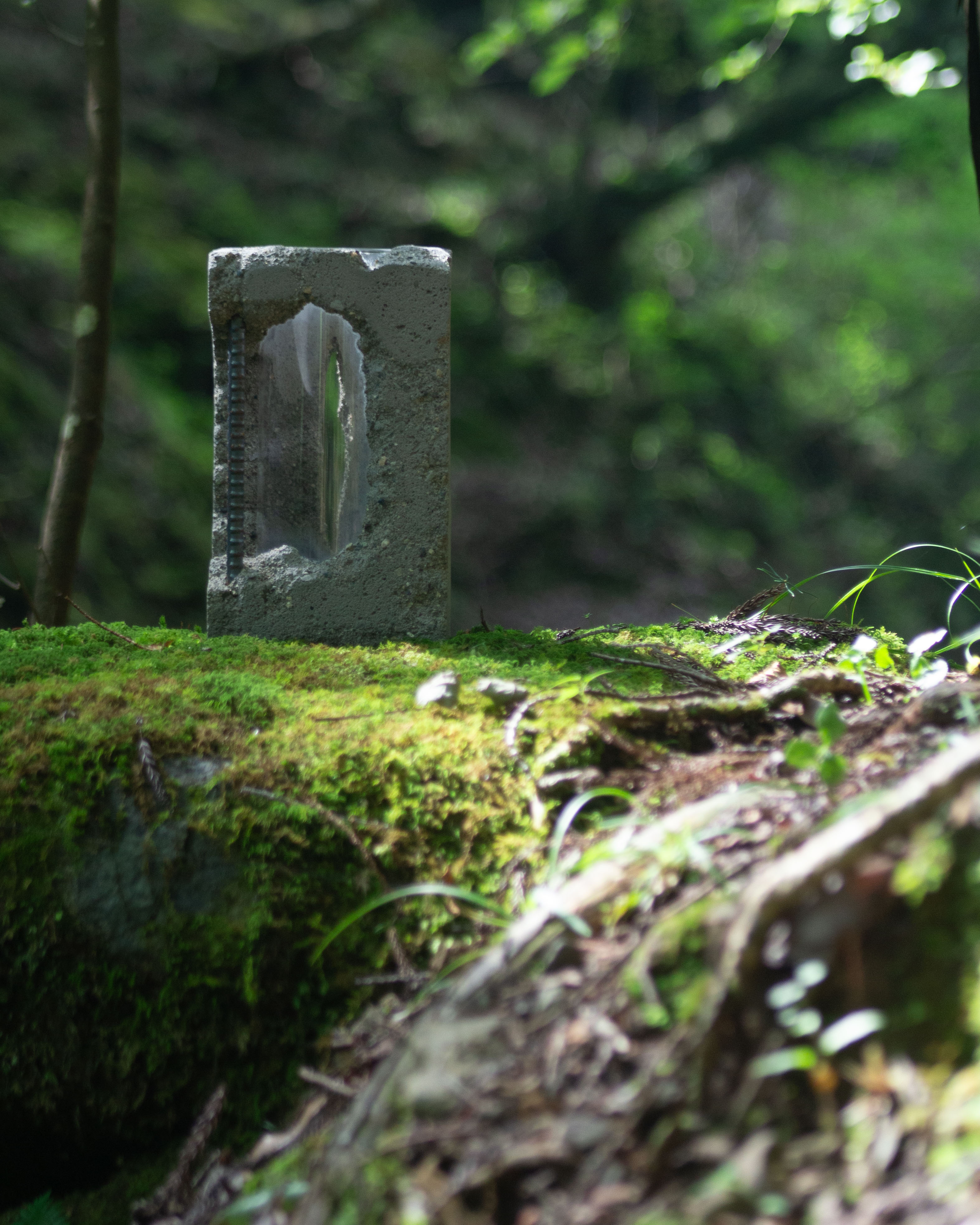 左右の朽ち方の対比、前後での花の見え方の対比を表現。