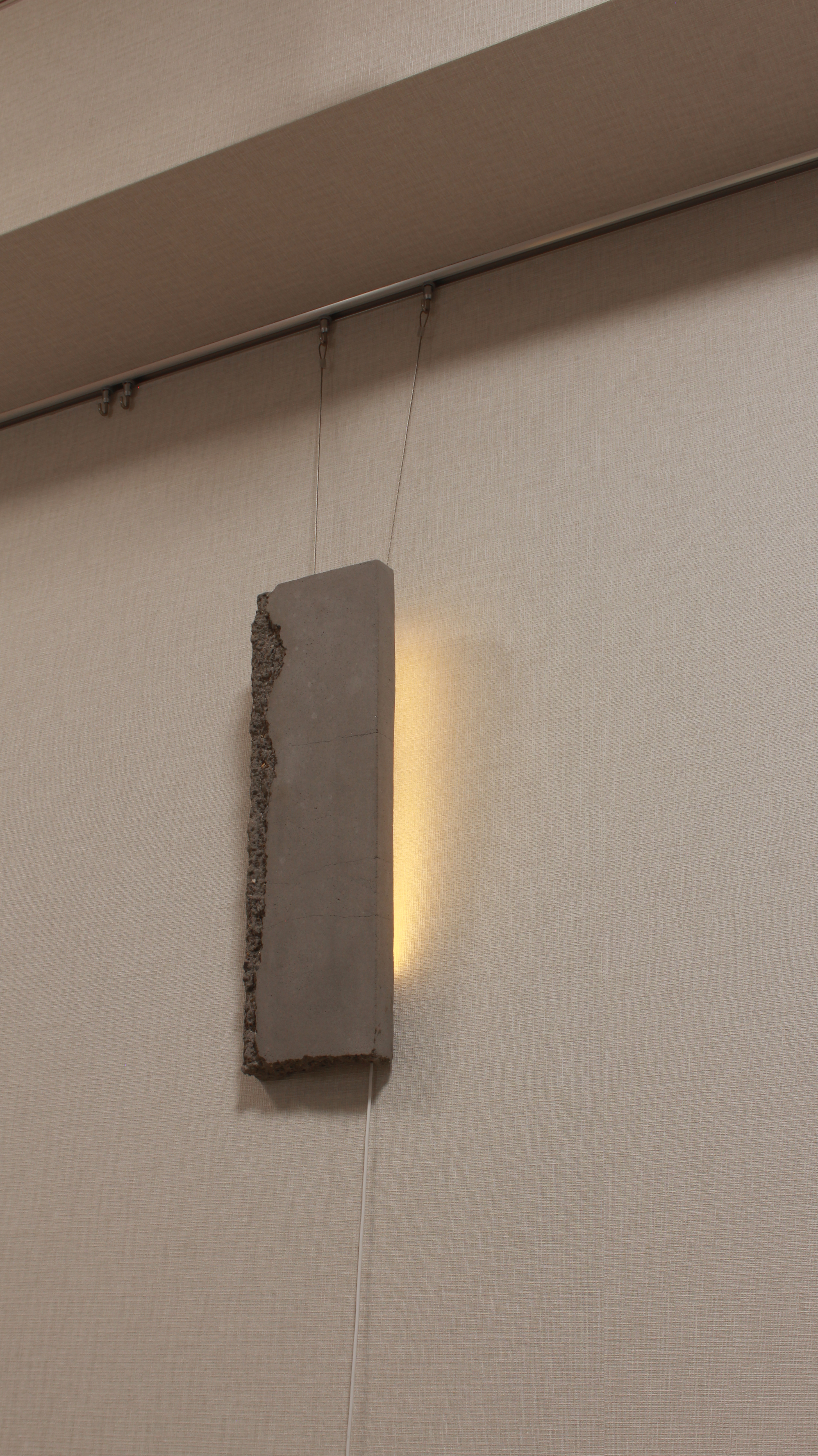 Lineのコンセプトである神殿。その『壁面』をイメージし、コンクリートで製作した吊り下げ式のウォールライトになります。