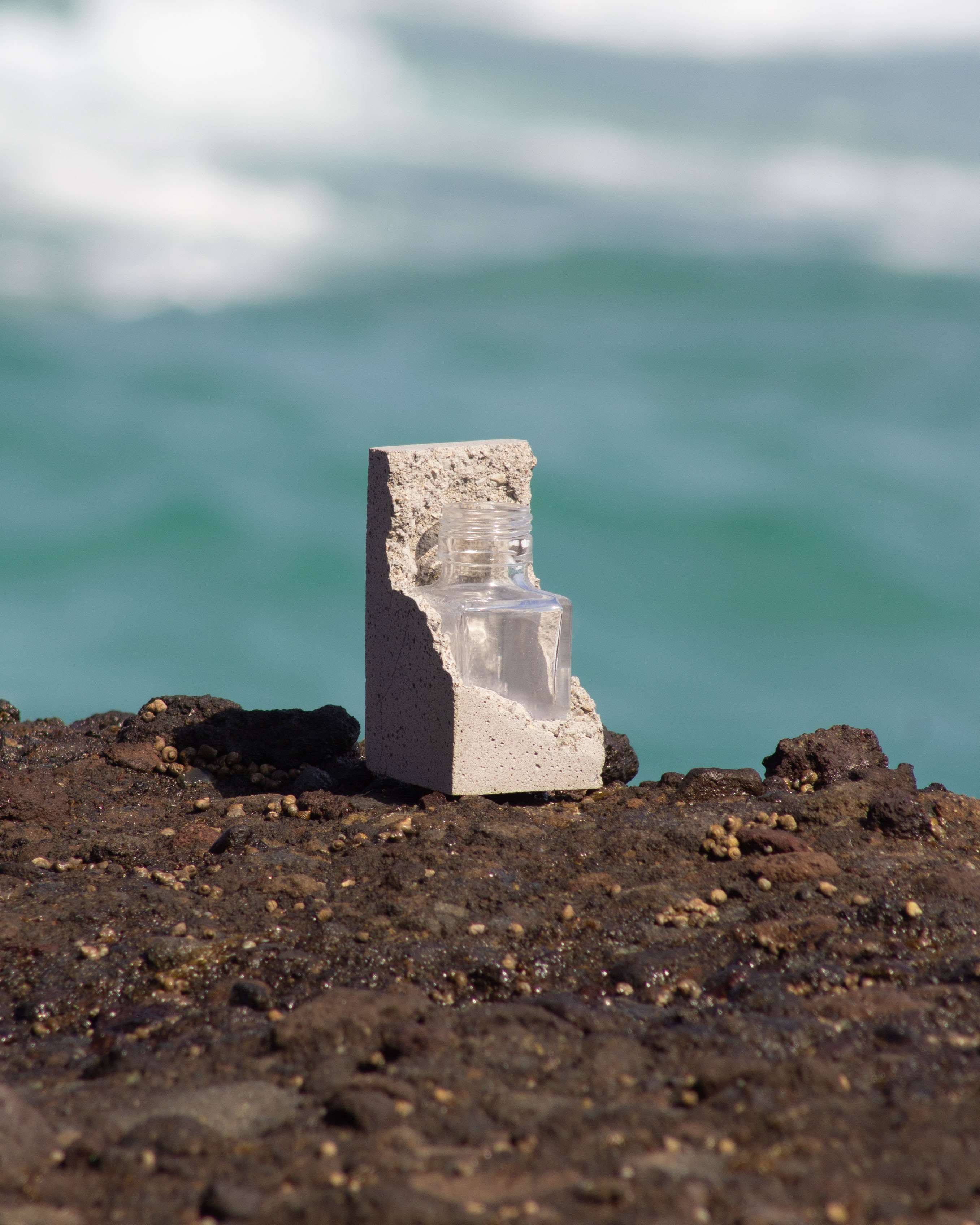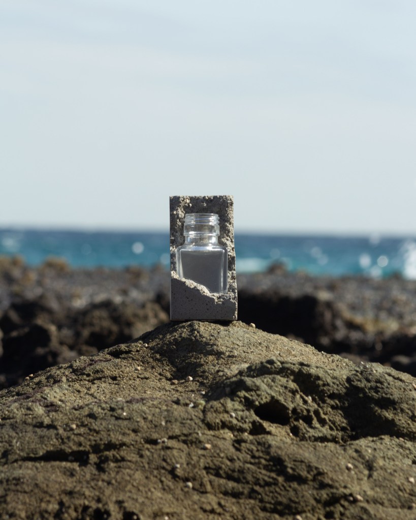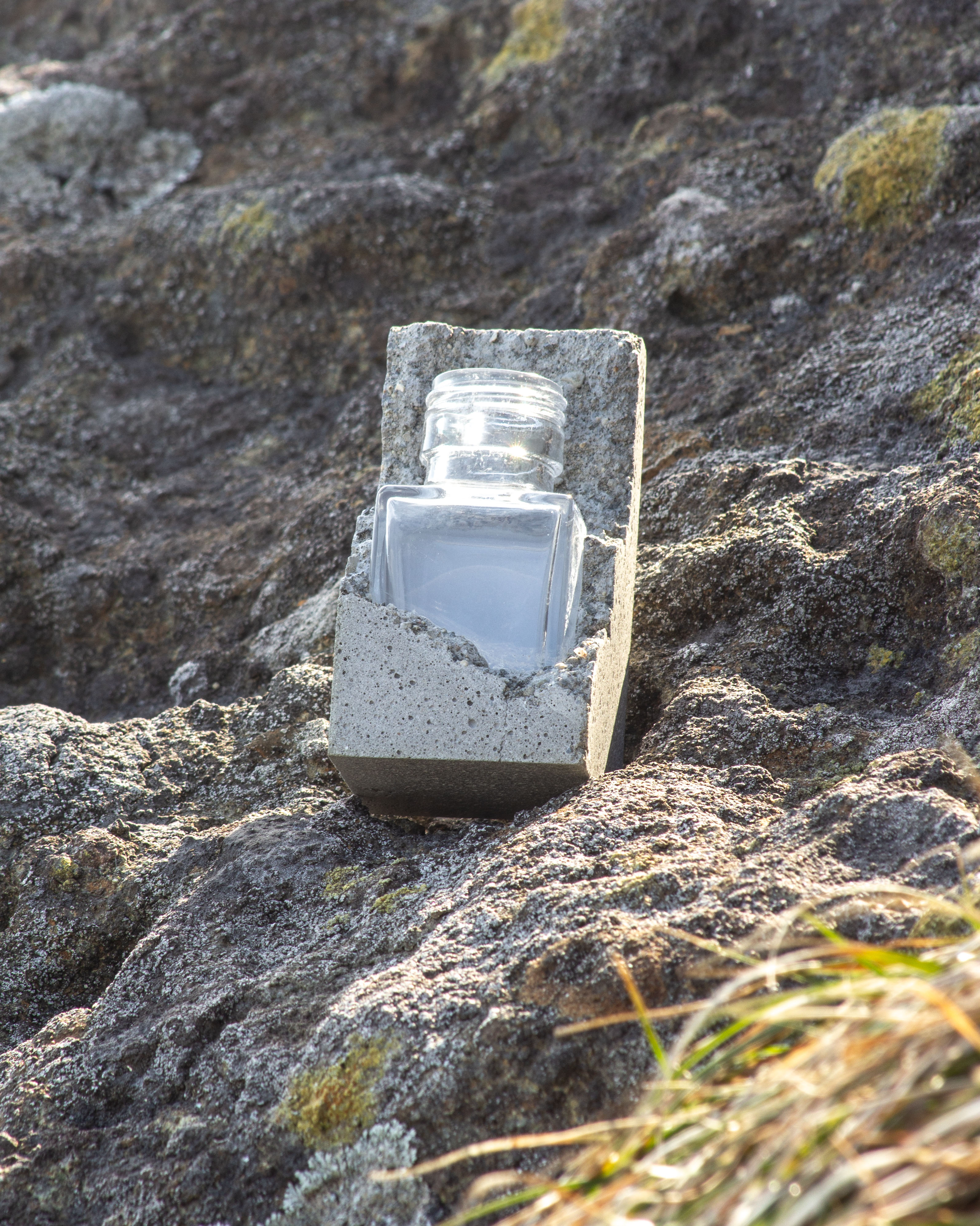 Lineコンセプトの固結をベースに溶岩に飲み込まれたガラスをイメージした一輪挿しになります。