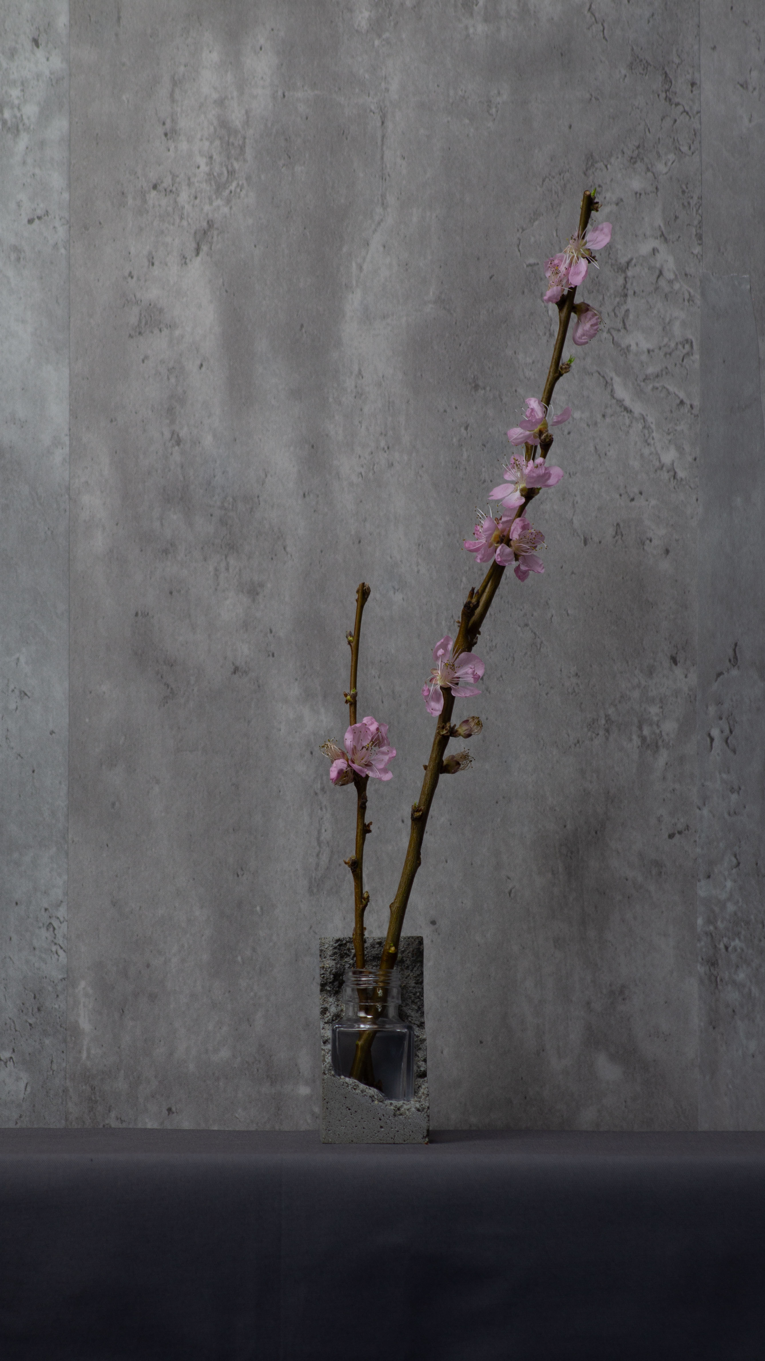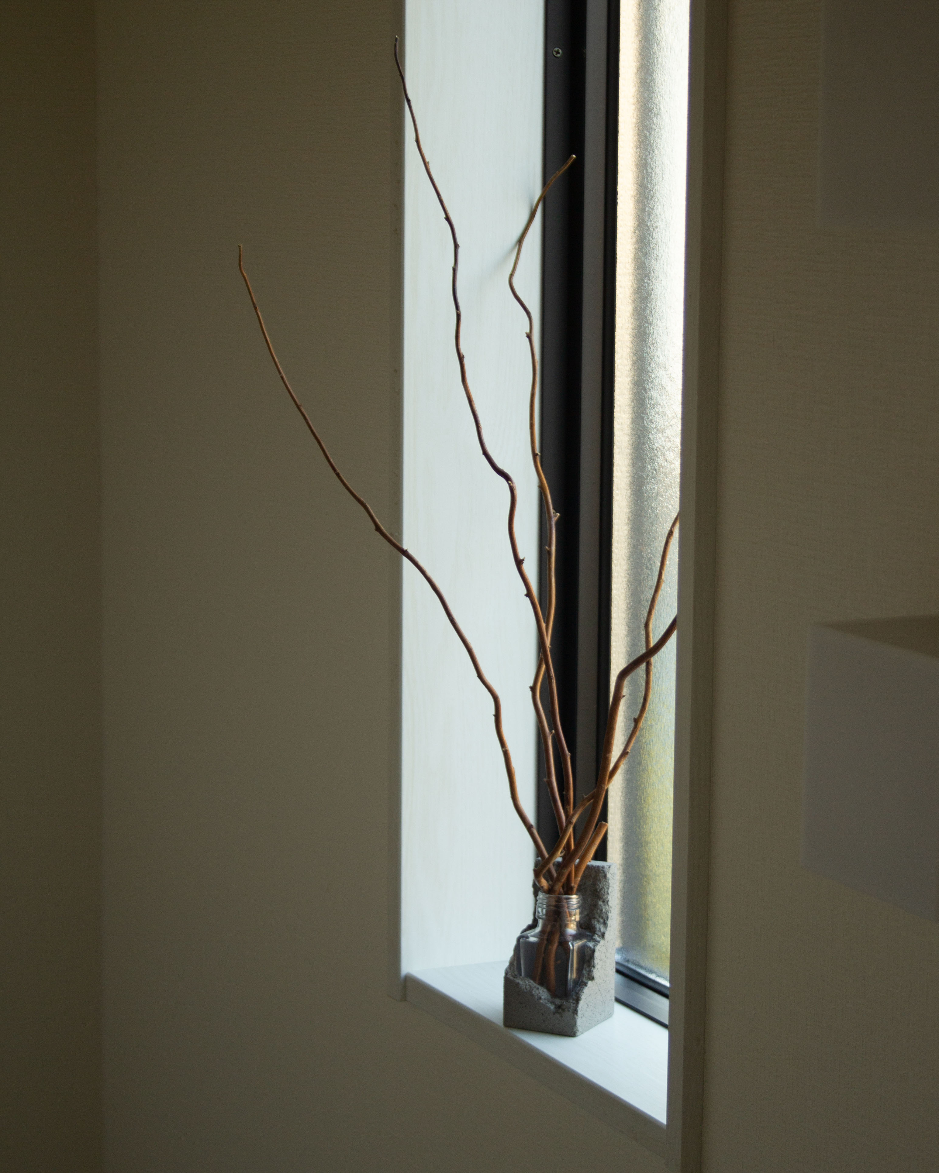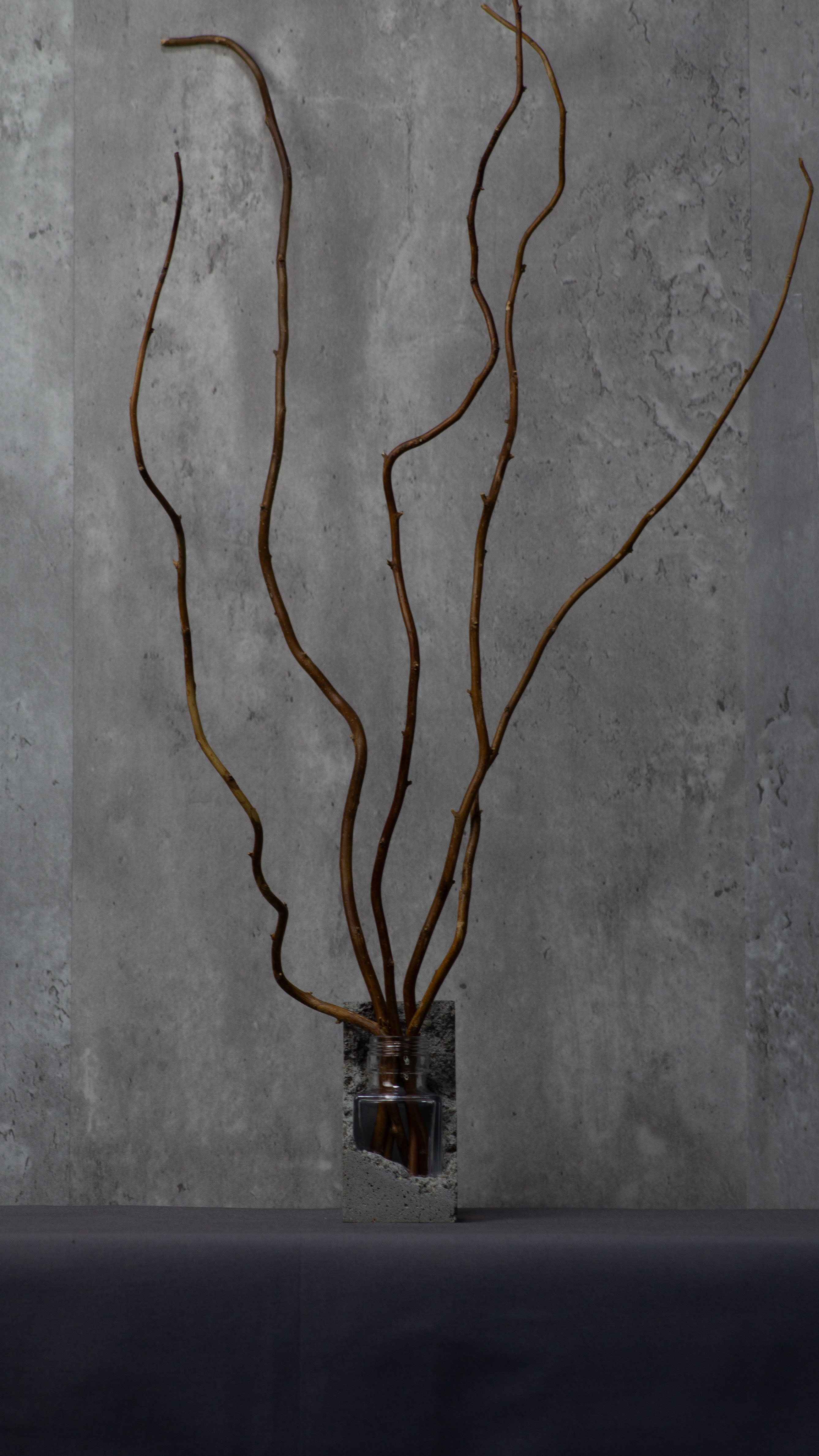 背面側にはコンクリートを多く残し、背負っているようなデザインにしました。そのため枝物や背の高い花も活けられるようになり、多種多様な植物を背負う大地の一部のような製品になります。