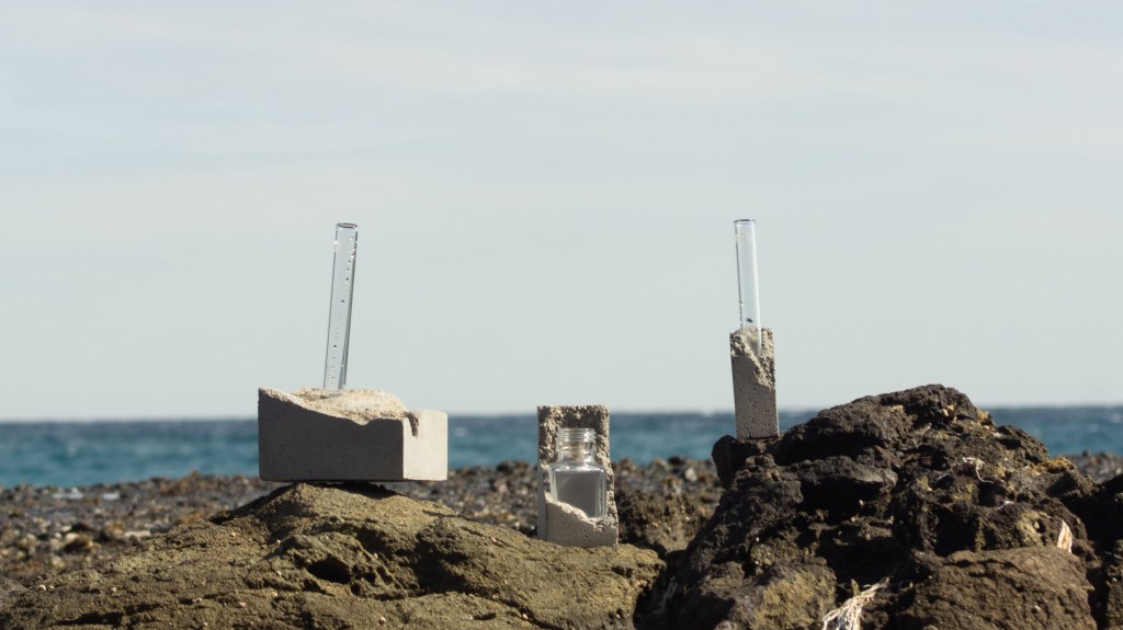 溶岩が冷却され固まる際に、場所・そこにあったものを飲み込むように固まる。全てが溶ける中で残ったわずかなものをイメージしたラインになります。